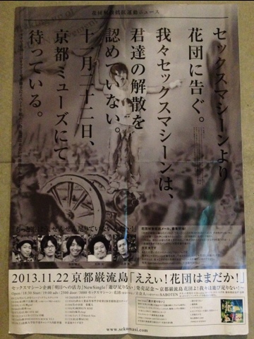 解散した花団とライブやるつもりで、こうした告知ポスターまでバンバン貼られてるのですが、花団メンバーにはまったくアポの連絡もしていないそうです。笑
