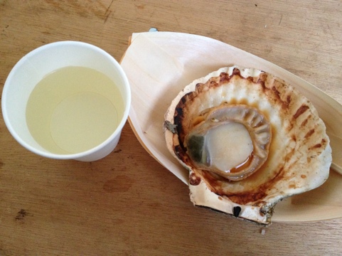 ホタテの浜焼きと一緒に飲んだ紙コップのお酒は「酔仙」♪