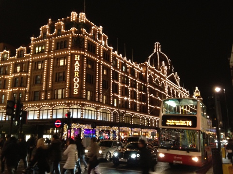 老舗の高級デパート・ハロッズ。もうデパートの域を超える電飾!!!びっくらこいたよ!