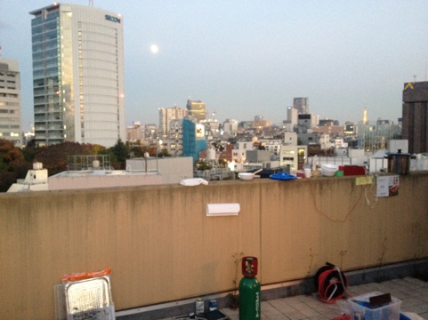 東京タワーが見える。月もキレイ。写真じゃ伝わらないけど。ナイスなロケーション。2013年、初めての着信がなんとも残念なことに、たいがー・りー氏だったことも本人交え爆笑。スリランカに旅行に行く予定の旅の達人の話も面白かった。そしてメインの「いも煮」もおいしかった♡