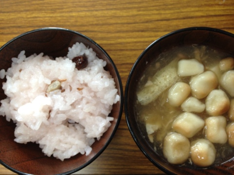 汁物は、これまた地元のもの。「おくずかけ」というものだそうです。寒風吹きすさぶ中での作業で身体の芯まで冷えましたが、一気にあったまりました。