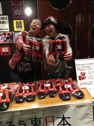 TAKAさんが日本のミュージシャン(LUNA SEAのINORANさんとか、ツワモノ揃い!)たちと新しく結成した、Muddy Apesというユニット。その、Muddy Apesとコラボレーションして、ライブ会場で販売した「ふっくら布ぞうり」。東京・O-East(今ってちょっと名前変わったんだよね?)でのライブ時の販売お手伝いをさせてもらったのでした♪