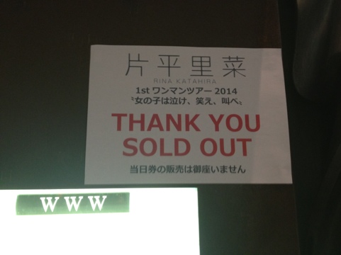 里菜ちゃんの初ワンマン、東京にて。ライブハウスのWWW、満員電車状態(マジ)!あまりのお客さんにスタートから最後まで結局モニター通してのライブ参戦。