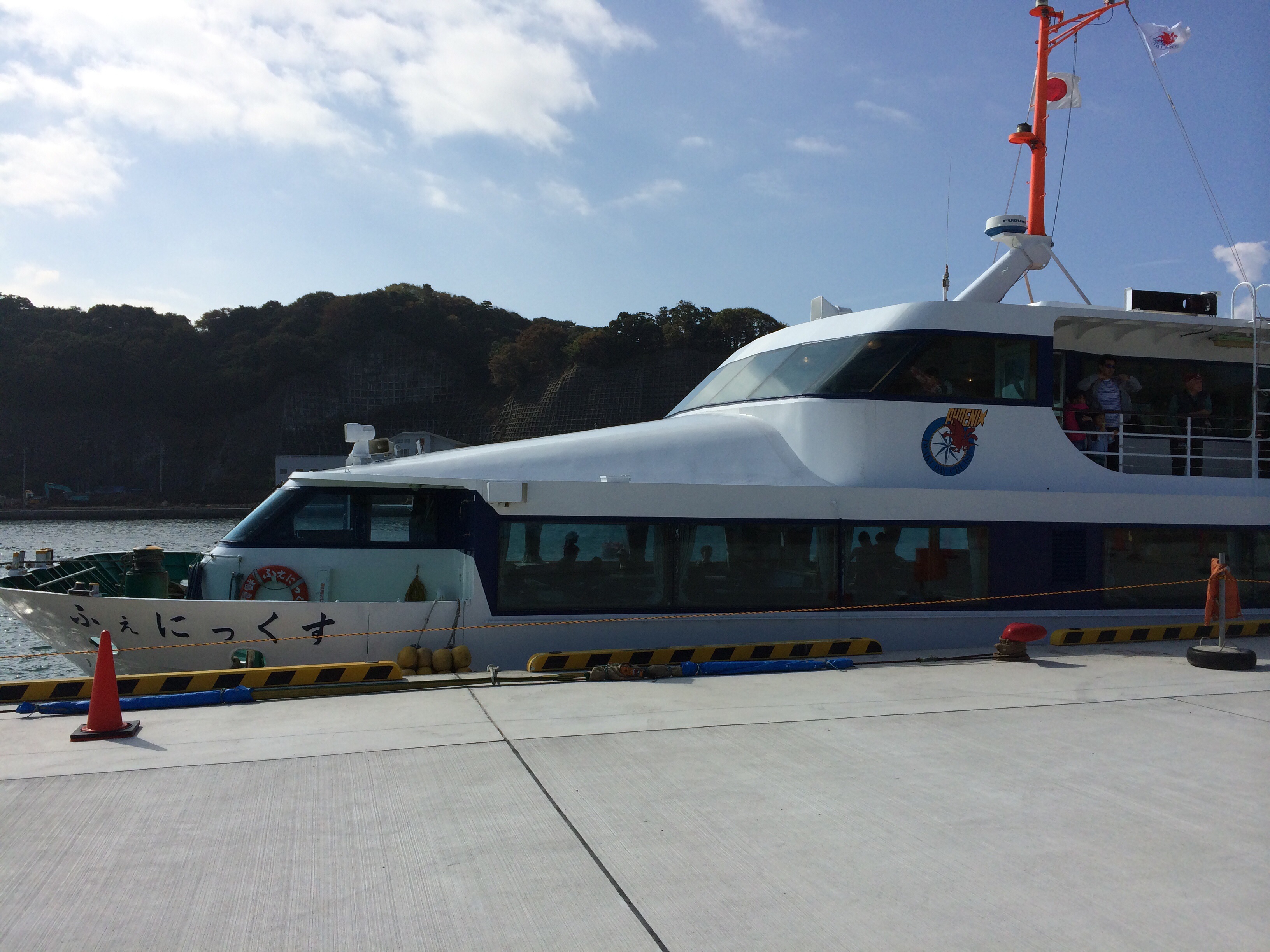 小名浜港を遊覧している船、「ふぇにっくす号」!この港に来てクルーズをするのは初めてのことだったんだそう!
