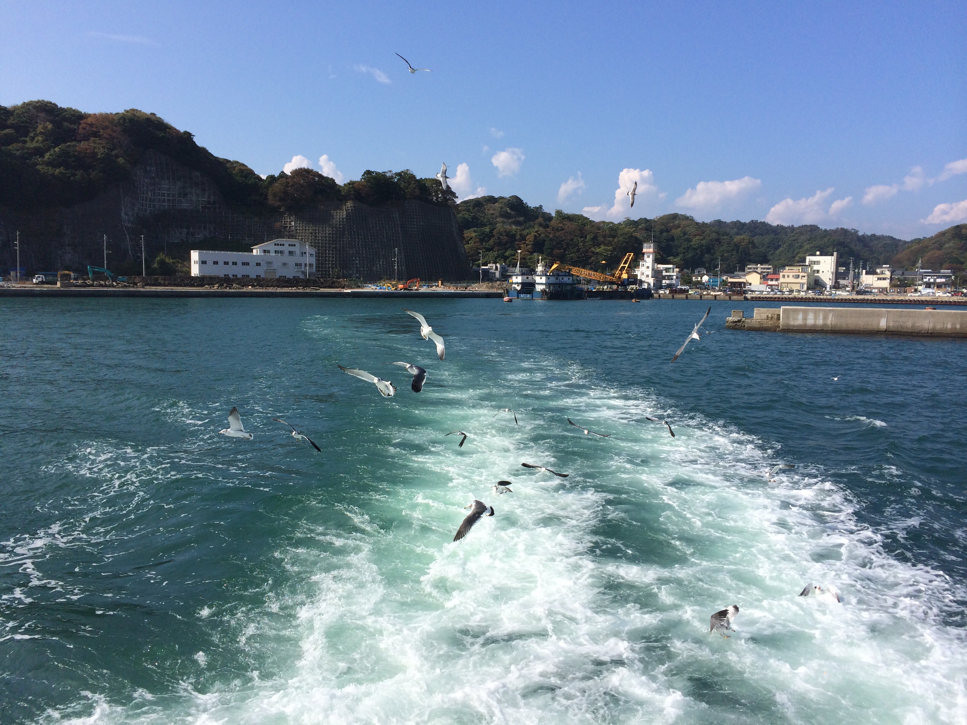 かっぱえびせんあげながらウミネコと戯れつつ。どうしてもiPhone写真の限界があるので全く撮っていませんが、震災の時の津波で全壊してしまった地域などを海側から見せてもらう機会となりました。肉眼で見渡す限りは、更地になっているようでした。