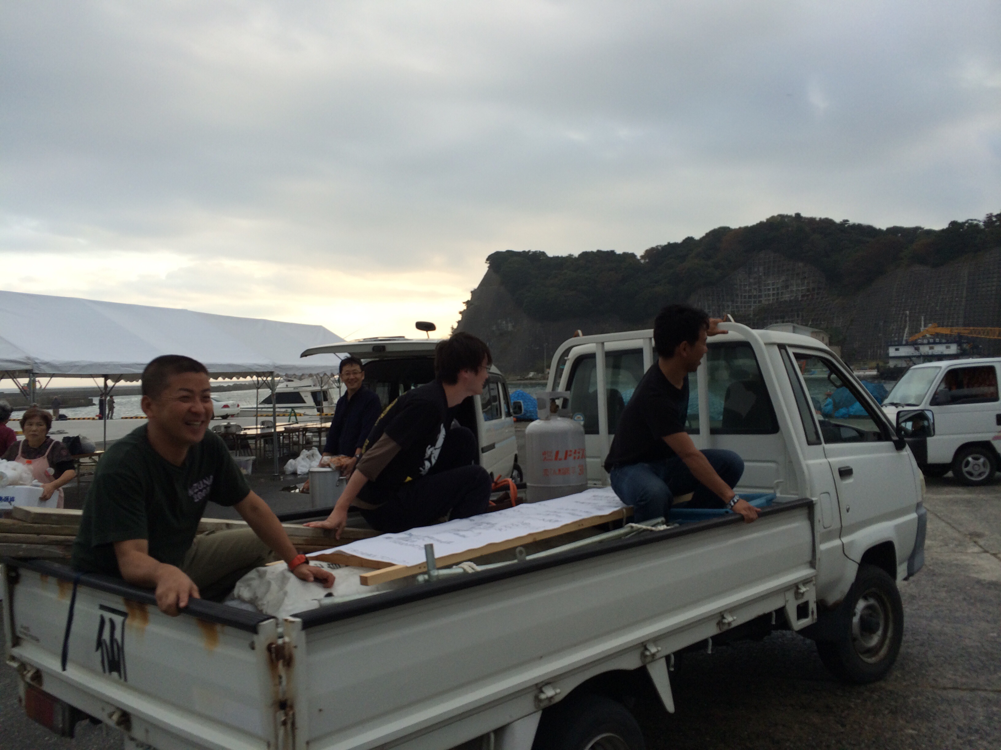 陽が傾き始めた頃に撤収のお手伝いのメドがついたところで解散。男手がとても役立った日だったと思う!こうしてトラックの荷台に乗ったりしてね(会場内のみで公道には出ておりません)、でもこうして町中を車が走る微笑ましい時代もあったんだろうなぁ、なんか海に似合うよなぁ、なんて勝手にノスタルジックになった一枚。笑
