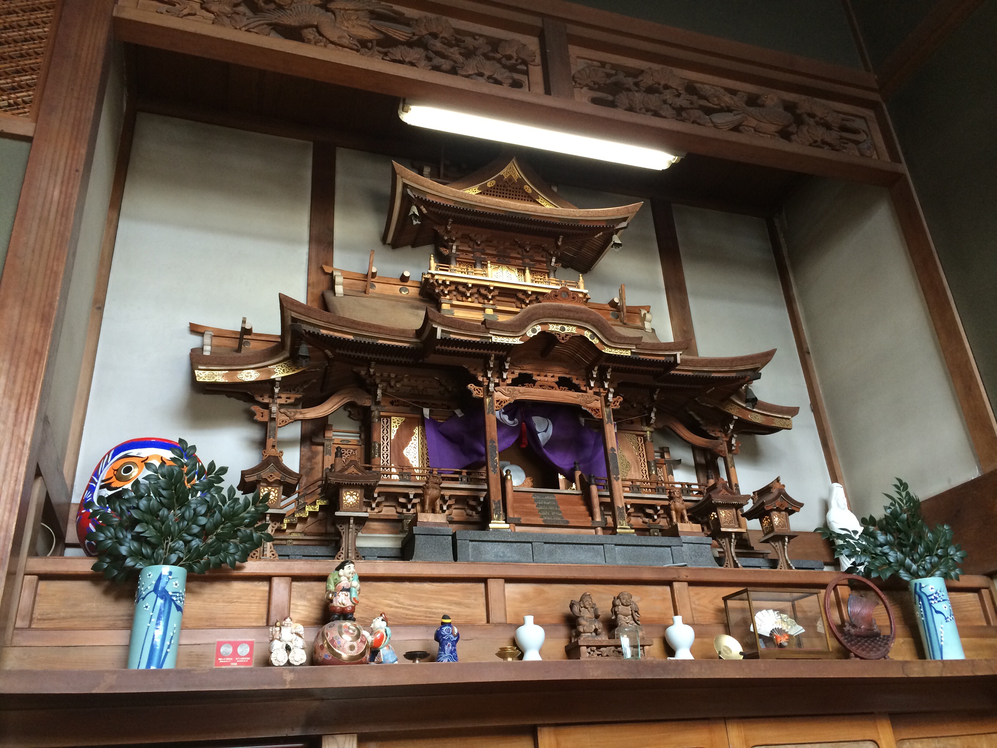 これは、一般の方のご自宅にある神棚…江名の町に住む、船主さんのお家にはこんな立派な神棚があるのだそうです。許可をいただいたので、一枚撮らせていただきました。こちらのお宅は、昭和20年代前半に作られたものがこうして残っているそうです。すごい!って何回言ったかなぁ(笑)?これがある故に屋根がすごく高くって、1階部分だけで3メートルくらいあるのではないかしら?この神棚自体もだいぶ大っきいものですしね。