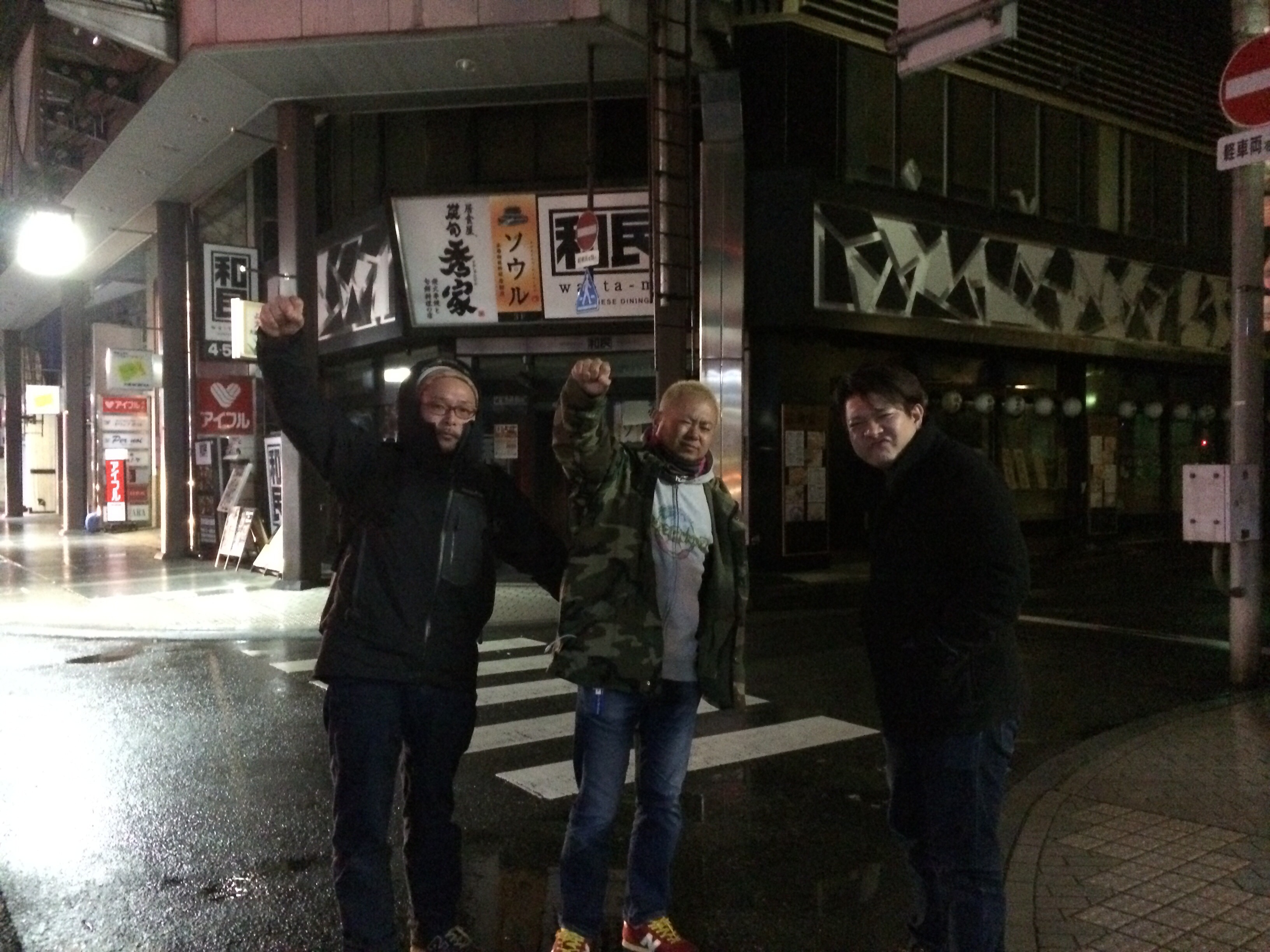 たかしさん(真ん中)&ホリちゃんに初遭遇!彼らはツイッターで情報を広めてくれたりとかしてくれてる音楽好きで、そんな音楽好きが高じて、今年はなんと…
