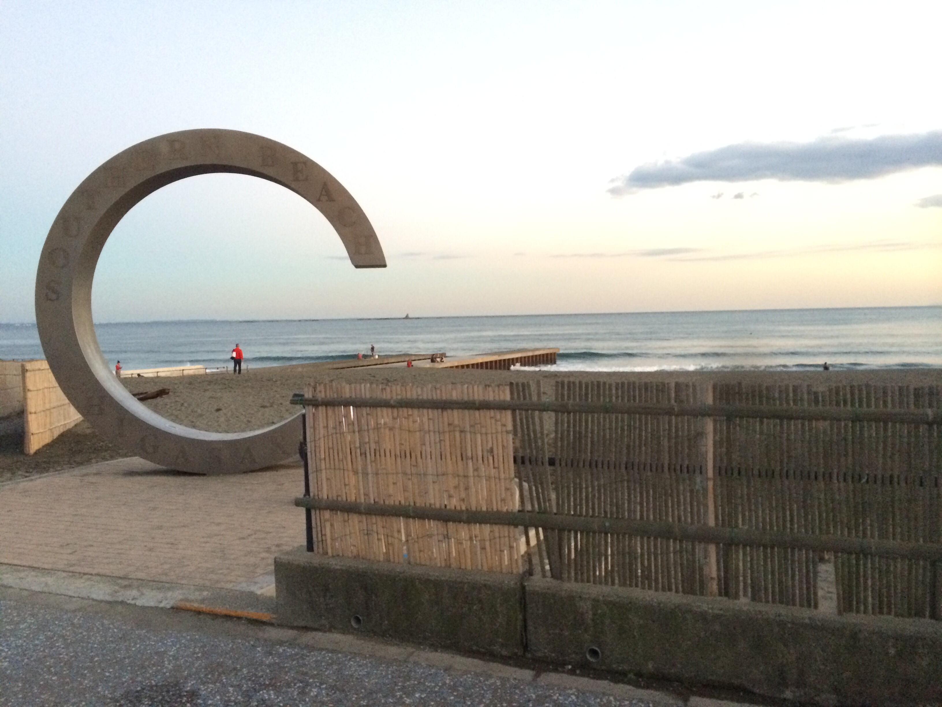 サザンビーチ。犬を連れてお散歩のご近所さんとか、サーフィンしてる人とか。のどかですね。