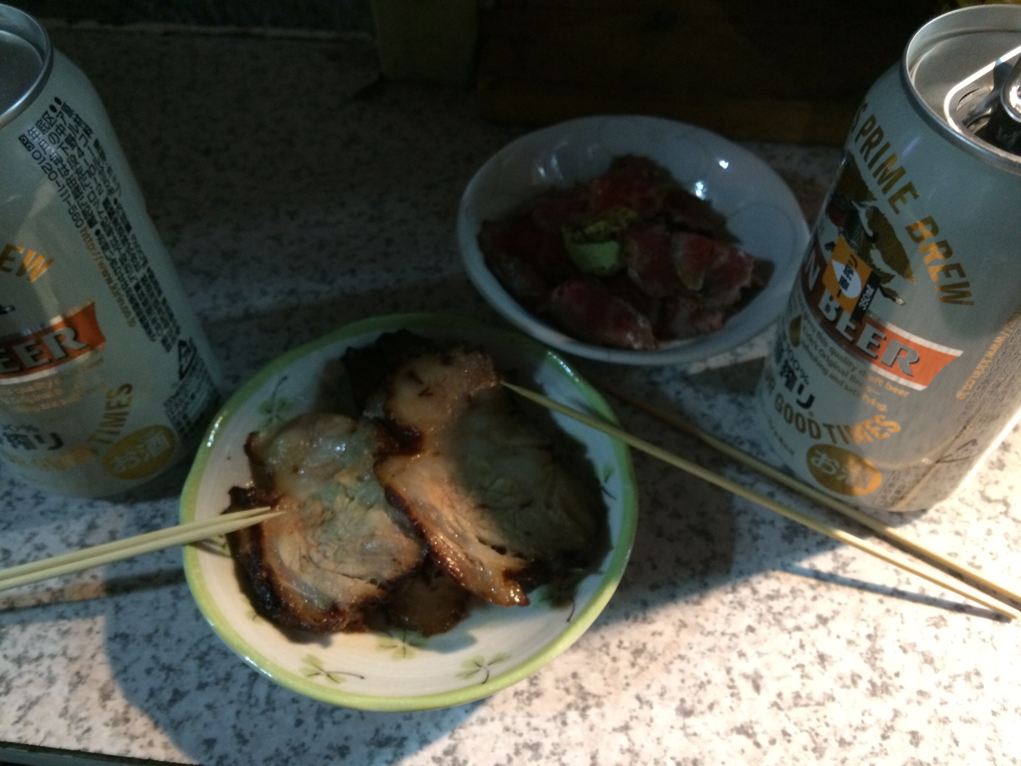 まず『肉のまえかわ』へ。暗くて残念ながら写真の見栄えが悪いが、牛肉のたたきがこれまたゼッピンで涙もの!コロッケもアツアツを頬張ってきた。いもがあまい!そして相変わらずのオジさんで大混雑♪