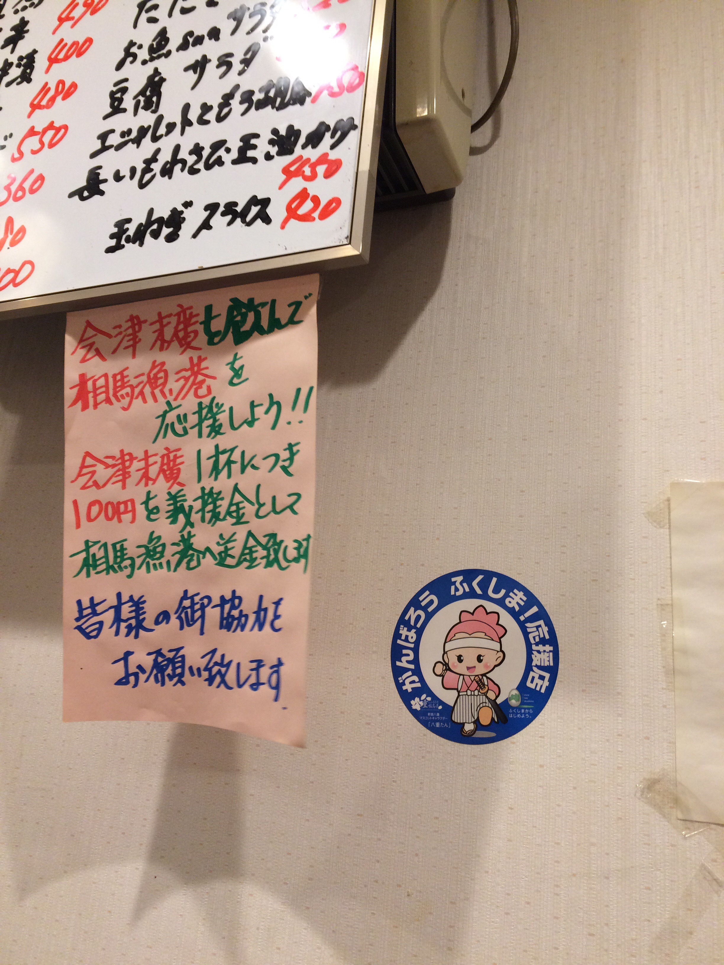 決められた銘柄だけど、飲むと相馬漁港へと寄付になる。ひたすらこの日本酒をいただく。